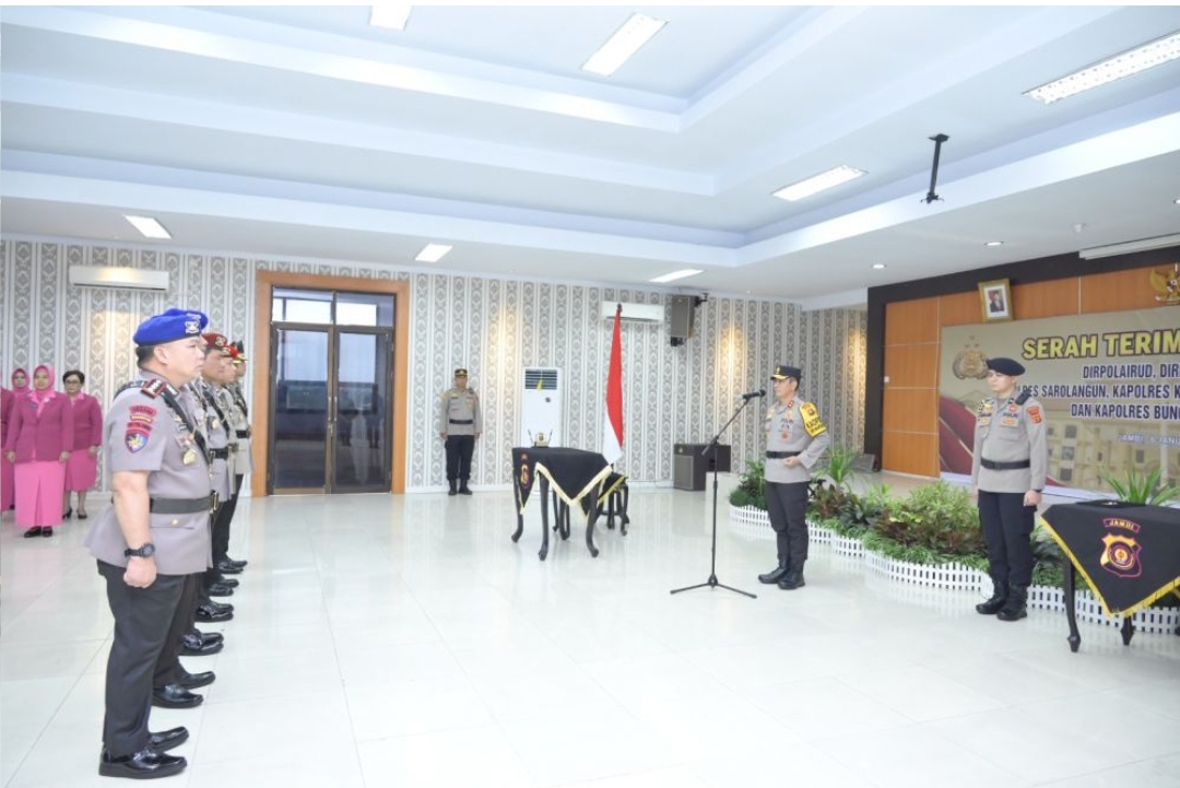 Acara sertijab ini bersamaan dengan Dirpolairud, Dirresnarkoba, Kapolres Sarolangun, Kapolres Bungo, dan Kapolres Muaro Jambi bertempat di Aula Lantai IV Mapolda Jambi yang turut dihadiri Irwasda Polda Jambi Kombes Pol Jannus Parlindungan Siregar, Ketua Bhayangkari Daerah Jambi, Pejabat Utama Polda Jambi dan sejumlah Kapolres di Jajaran Polda Jambi, Senin(08/1/24).